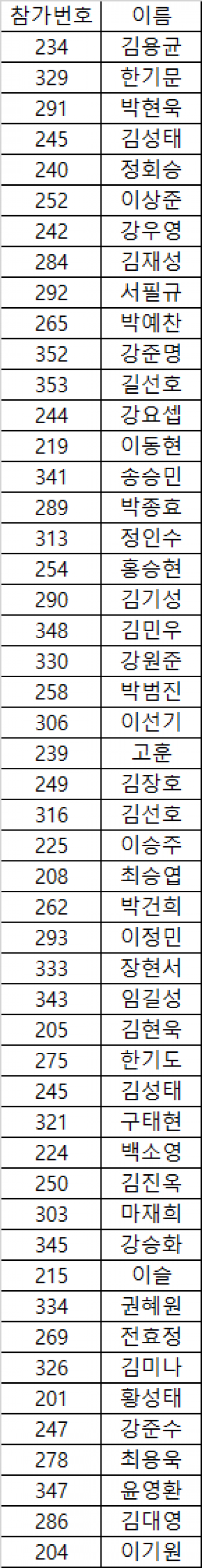 대회 접수/출전 현황