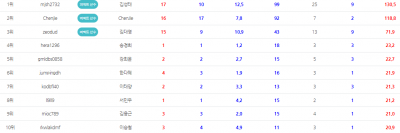 7월 WNGP개인랭킹 1~10위 선수들